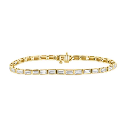 Pulseira Riviera com Diamantes Baguete 17cm em Ouro Amarelo 14k